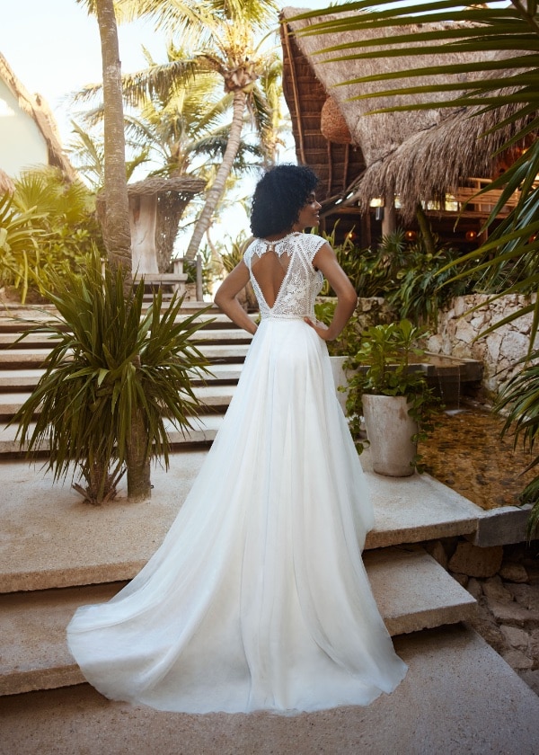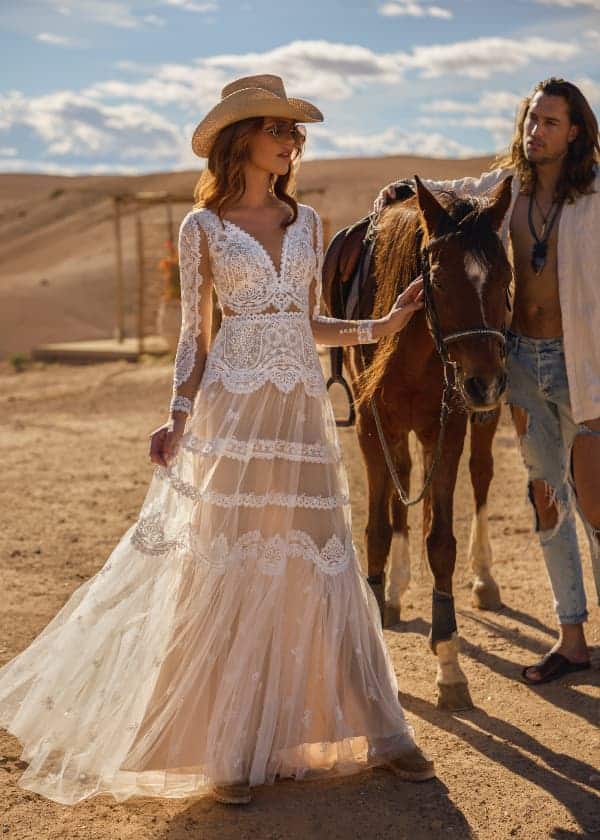 Herve Paris Bridal steht für „Celebrating the Bohemien way of life“. Diese Kleider strahlen den Inbegriff von Leichtigkeit, den Sommerwind in den Haaren fühlen und barfuß über den Strand laufen aus. Die Kollektion besticht mit einer Vielzahl an verschiedensten Spitzen und nudefarbenen Unterstoffen. Tiefe Rückenausschnitte, transparente Cutouts und romantische Trompetenärmel lassen jede Vintagebraut erstrahlen.
